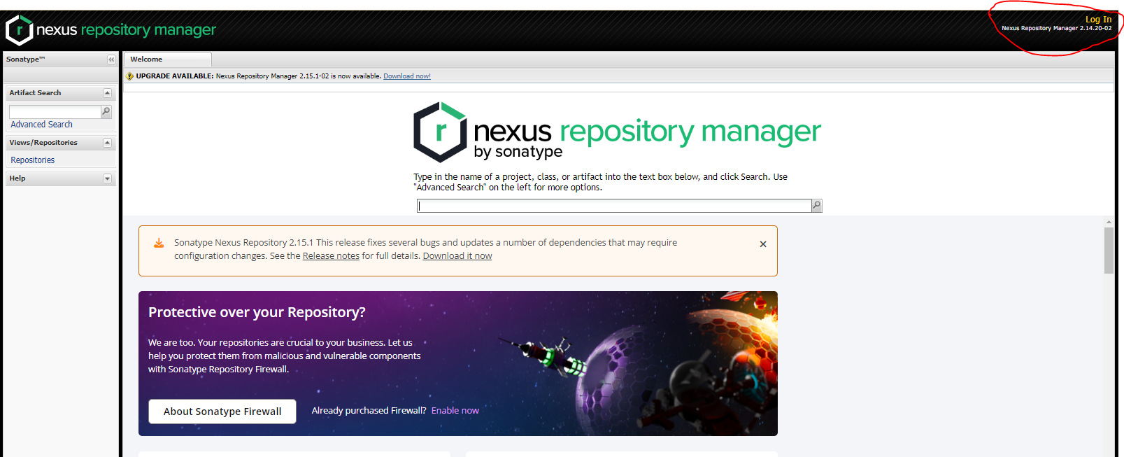 - From a desktop web browser, visit the url where Sonatype Nexus Repository is running.