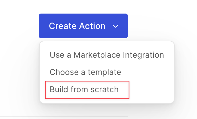 Click Create Action -> Build from scratch